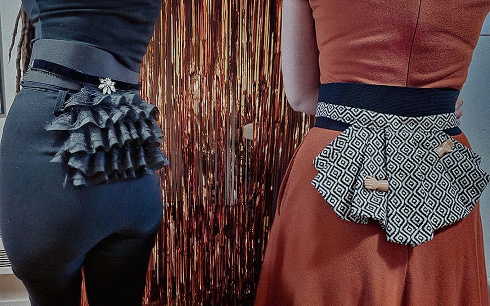 Now your collars can become a bustle for a new versatile look. You can customize your belt by choosing the 3" wide zipper style for more of a waist cinching look OR choose from the 2"-2.5" wide buckle style. The buckles are sourced locally and some are unique thrifted vintage pieces. There is also an additional option to opt out of the hooks and just have a standard belt without the ruffles. It's completely up to you and your style!
