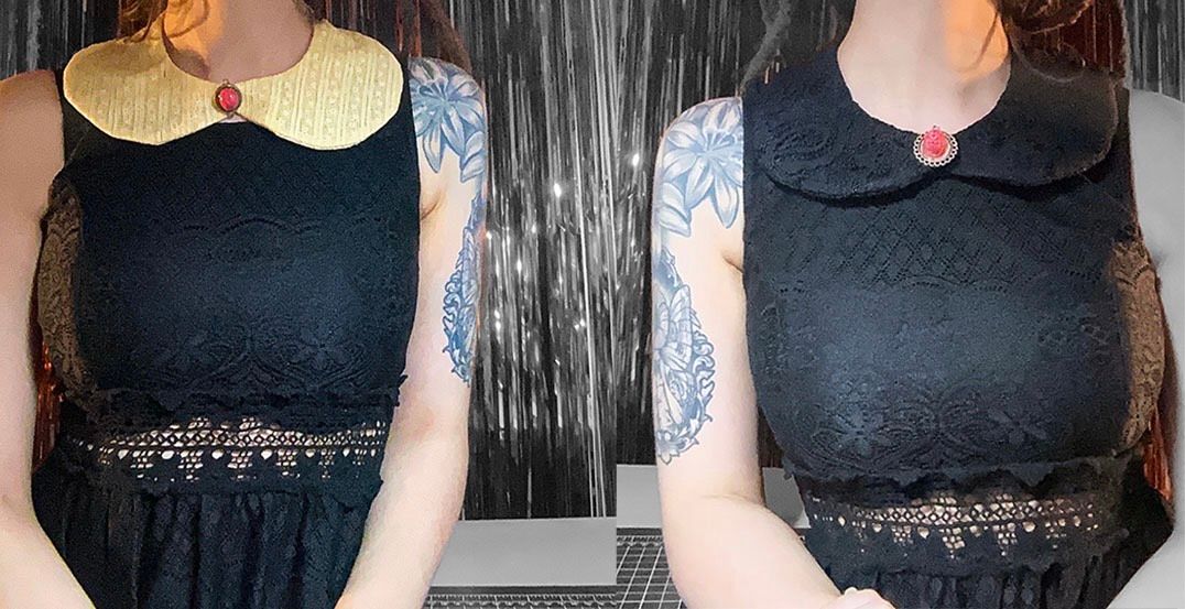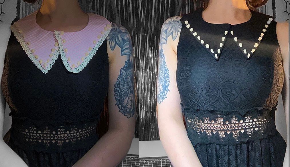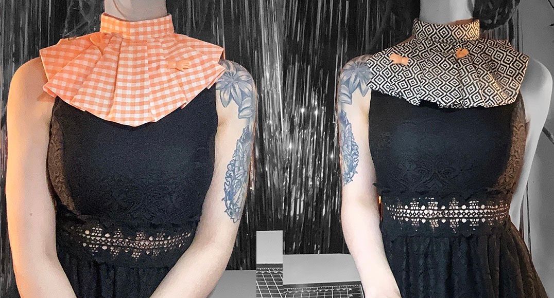 This first official collection release is made up of fabric scraps from previous garments worked on, vintage fabrics and some doll parts scavenged from a friends basement, with the remainder of materials being found from various small businesses and makers. I wanted to play with a color palette of light and dark to show contrast in this collection for each collar style. Doll parts represent the many parts of ourselves we've been and become. For me, I grew up watching horror movies--which led me to go to college for Special FX/Entertainment Design. After college, I've worked for various small businesses and taught myself how to sew. Which, oddly, when I was young, my Nonna used to make my clothes and photograph me in different scenes (she was a self taught artist too!), but passed when I was 9. I've always had a passion to express myself through fashion and fell in love with antique style and oddities, as well as horror. The various jobs I have held and the things I've learned through them have led to Revenant Wares (more on that in another post). In this collection there is dark, as well as light. There is some humor and whimsy along with some fun gore. I've always been what I call a restless artist. Meaning, I am always looking for new mediums to learn and apply to my never-ending passions. There are different pieces and parts to all of us that make us who we are. I hope you enjoy my collection as much as I did making it. 🖤And with that, in an effort to not make this way too long, I will stop here.