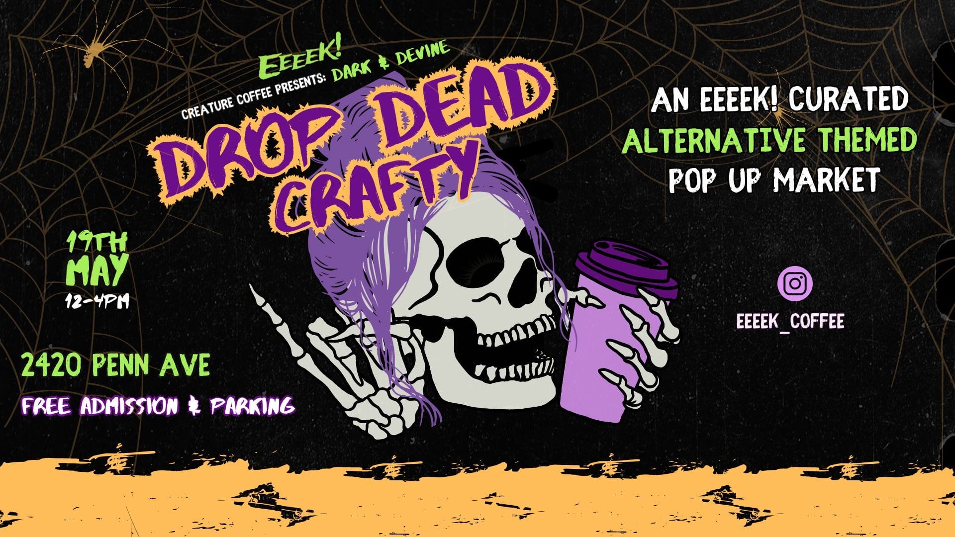 We are PUMPED to be at the second bi annual show of Drop Dead Crafty Sunday May 19th. There will be lots of awesome vendors for your spooky little heart to enjoy. Follow eeeek_coffee on instagram for updates!! and eeeekcreaturecafe.com